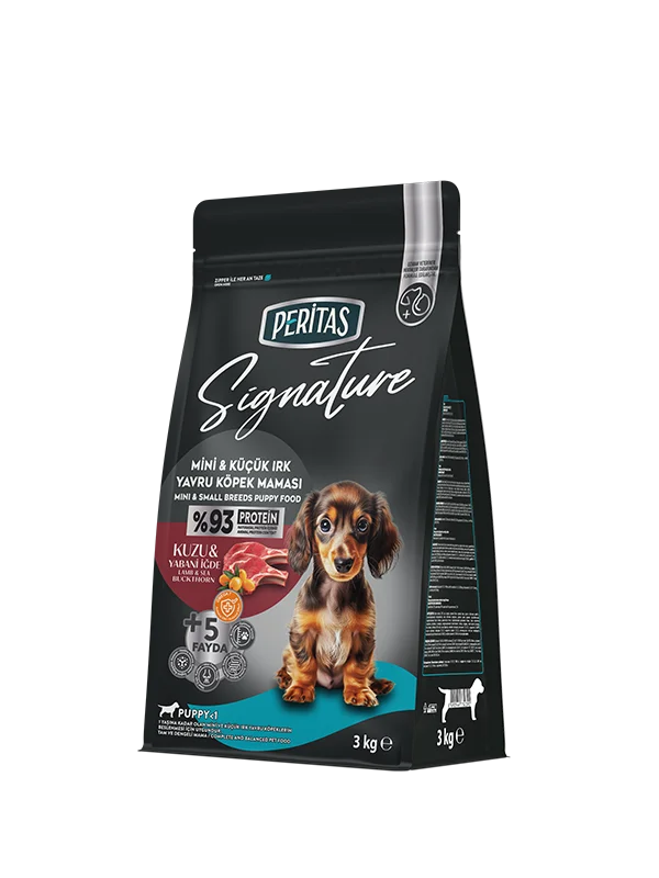 PERITAS Signature Корм для щенков мини и малых пород с ягнёнком — это полноценный и сбалансированный сухой корм с ягнёнком и облепихой, разработанный для удовлетворения всех питательных потребностей вашего щенка мини и малой породы.