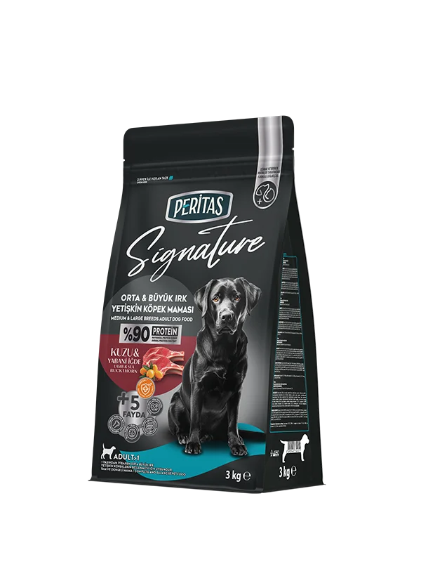PERITAS Signature Полноценный и сбалансированный корм с ягненком и облепихой для взрослых собак средних и крупных пород, разработанный для собак старше 1 года.